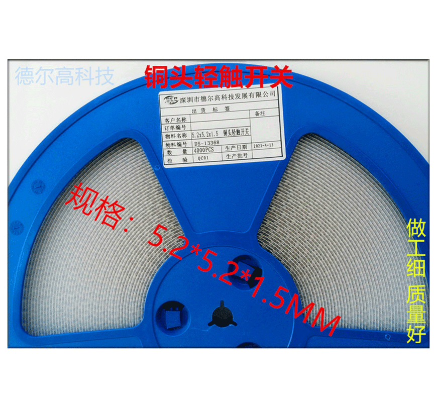物料名稱:5.2*5.2*1.5 銅頭輕觸開關(guān)