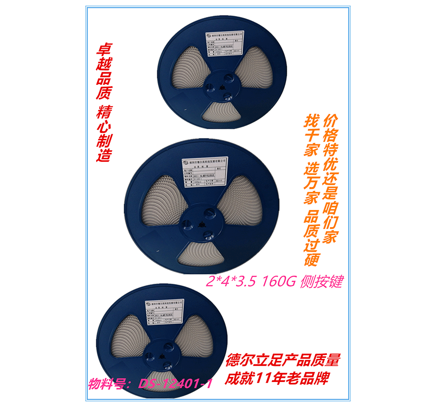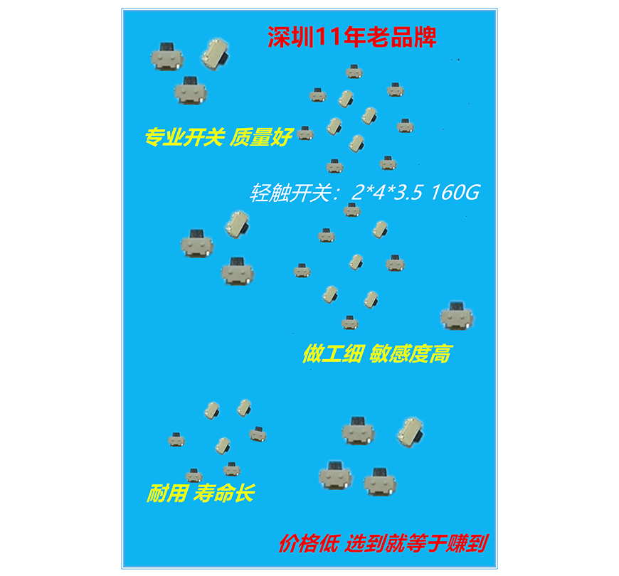 輕觸開(kāi)關(guān):2*4*3.5 160G 側(cè)按鍵